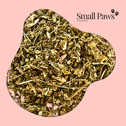 Marshmallow leaf is an excellent herbal choice for small animals, offering a variety of health benefits. Known for its soothing properties, marshmallow leaf can help alleviate digestive discomfort and promote gut health, making it particularly beneficial for pets with sensitive stomachs. The leaf is rich in mucilage, which provides a natural soothing effect on the digestive tract and can aid in hydration. Additionally, marshmallow leaf contains antioxidants that support the immune system, helping your furry friend stay healthy and vibrant. Its mild flavour and texture can also encourage foraging behaviours, adding variety to their diet. Overall, incorporating marshmallow leaf into your small animal's meals can enhance their well-being while providing a tasty treat!