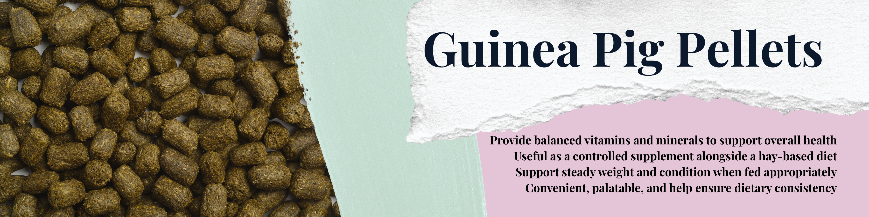Guinea pig pellets, timothy hay, marigold flowers, hibiscus, rosehips, dandelion leaf and red clover.