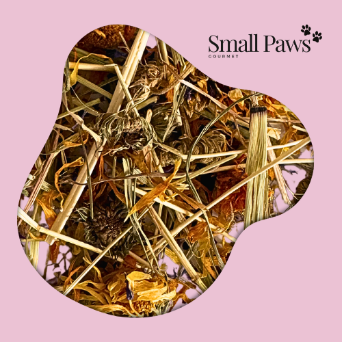 Ingredients: Timothy Hay, Marigold Flower, Hibiscus, Cornflower