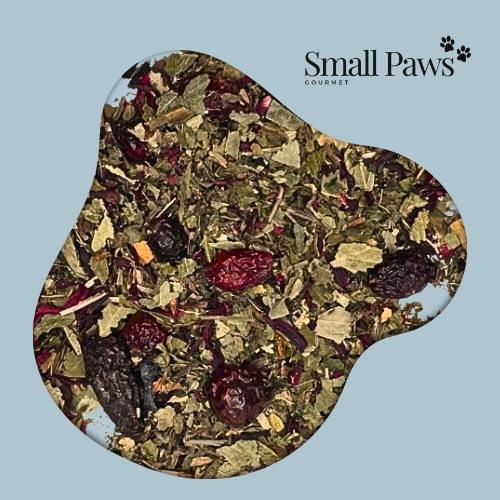 Includes Nettle leaf, dandelion leaf, blackcurrant leaf, birch leaf, hibiscus and rosehips.